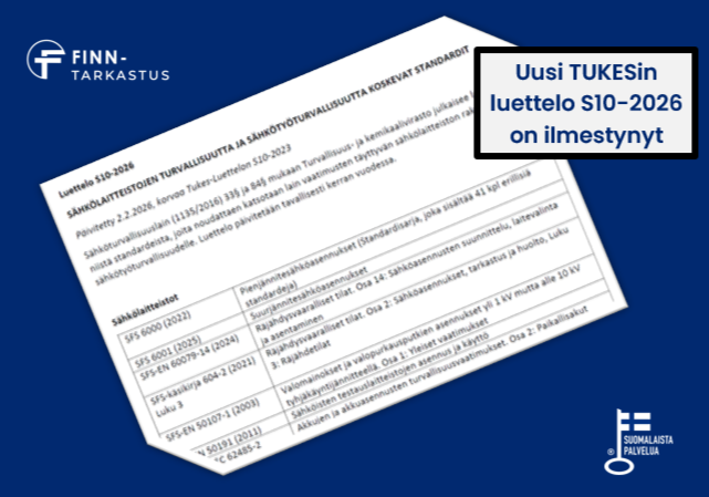 Viime vuonna uudistettu suurjänniteasennuksia koskeva standardi SFS 6001:2025 on nyt päivitetty sähkölaitteistojen turvallisuutta ja sähkötyöturvallisuutta koskevaan TUKESin luetteloon S10-2026. Tuore luettelo on julkaistu juuri tänään TUKESin nettisivuilla!